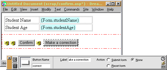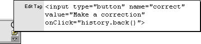 By far the easiest way of allowing the user to make corrections is instructing them to hit the browser's BACK button - but that doesn't give a professional impression. We'll get round that by creating a smart button which will do exactly the same thing - take the user back to the previous page.