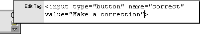 In order to make it a BACK button, we need to use the Quick Tag Editor to make a small change to the button. The Quick Tag Editor (QTE) lives on the end of the Property Inspector. See it circled in red below.